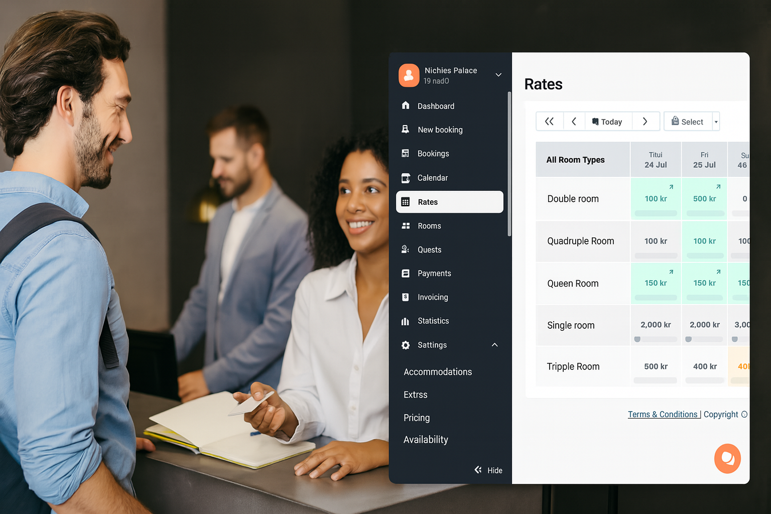 Meillä on kaikki B&B:si hallintaan tarvitsemasi työkalut suorasta varausmoottorista automatisoituihin sähköpostimalleihin ja yhdistettyihin verkkovarauspalveluihin (OTA). Voimme auttaa jopa markkinoimaan, tekemään lisämyyntiä, säätämään hintoja ja hyväksymään verkkomaksuja ja tukea siten tulojen lisäämiseen tähtääviä ponnistuksia ympäri vuoden.